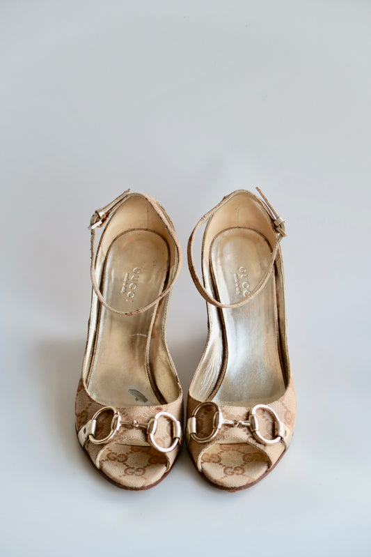 Gucci Beige GG Monogram Wedge Heels, IT 36