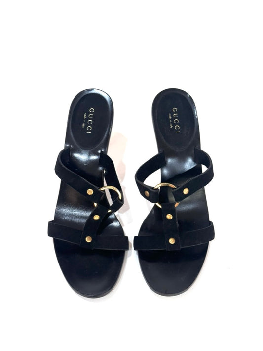 Gucci Red Patent Leather Wedge Round Toe Pumps, IT 36.5