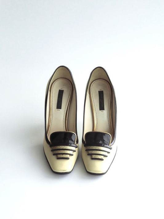 Louis Vuitton Cream/Black Leather Pumps, IT 35.5