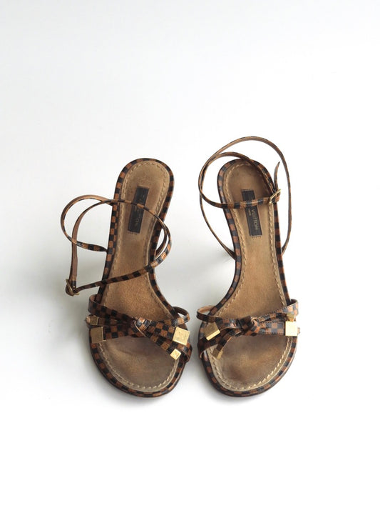 Louis Vuitton Denim Buckle Heels, IT 37.5